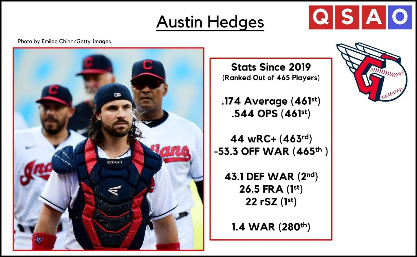Austin Hedges, the Cleveland Guardians’ catcher, owns a league-worst offensive WAR of -53.3 since 2019 and a 44 wRC+ (tied for 2nd worst among batters with 300+ plate appearances). Chris Davis of the Baltimore Orioles, who was notorious for his horrible stretch of hitting in recent years, had a 48 wRC+ over that same span. However, Hedges has a +1.4 WAR compared to Davis’ -2.2 WAR, and he’s still set to be playing baseball in 2022, unlike Davis who is now retired.